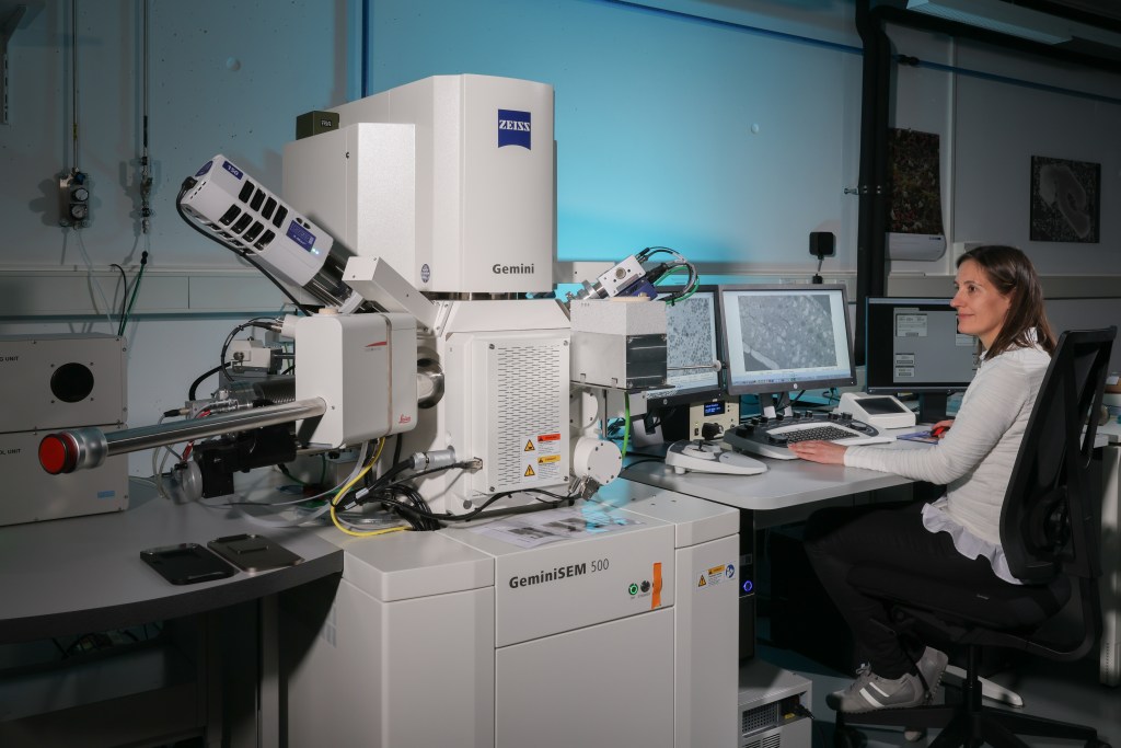 The Gemini 500 SEM instrument can analyze a wide range of samples, including biological tissue, geological specimens, fossils, soft materials, polymers, nanoparticles, electronics, and microstructures of e.g. building materials.